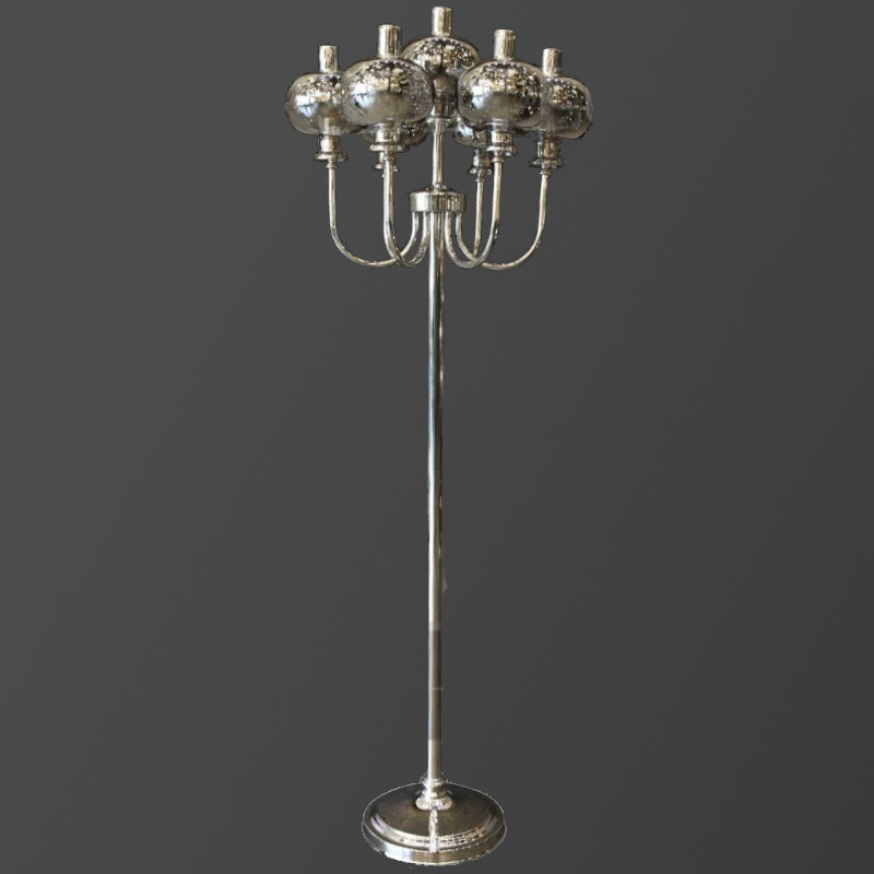 این آباژور بلند و پرنور از محصولات باکیفیت پرشین لوکس برای زیبایی و نورپردازی خانه شما میباشد. داشتن 160 سانتی متر ارتفاع، 7 سرپیچ لامپ و حبابهای باکیفیت از ویژگیهای این آباژور هستند. حبابهای این لوستر شکل بسیار جذابی دارد و از نوع وارداتی است. بدنه این محصول تمام نقرهای وزن آن 635 کیلوگرم است.